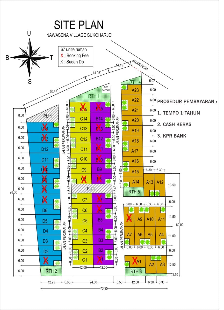 Nawasena Village Toriyo sukoharjo terdiri dari 58 Unit Rumah dengan tipe unit yang bervariasi sesuai dengan luas unit kavlingnya